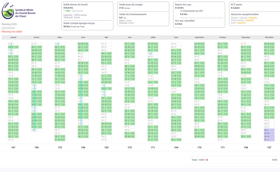 Il intègre des règles de calcul RH (temps partiel, RTT, CET, heures supplémentaires, tickets restaurant) et des validations hiérarchiques.